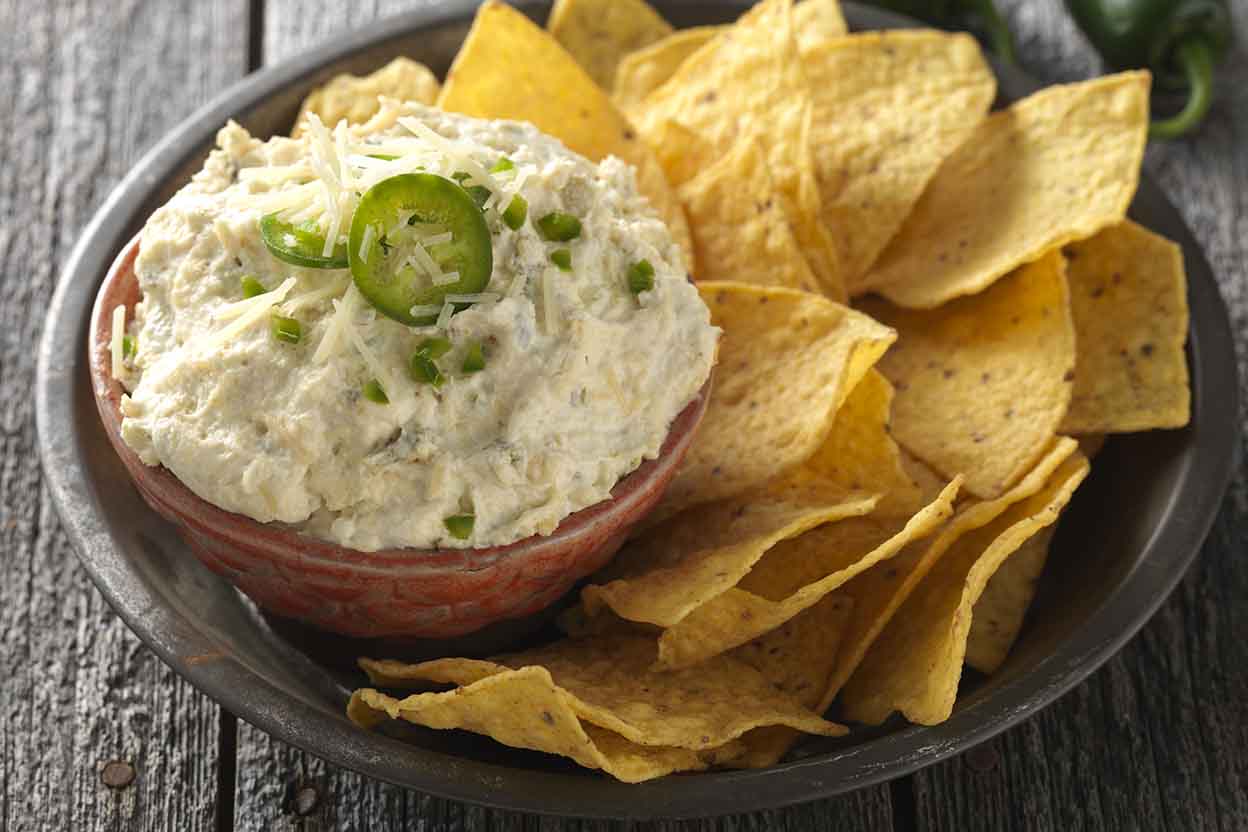 If you choose to use bread, large cubes are great for grabbing and dunking. Baked tortillas and pita are great choices as well.