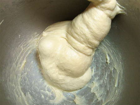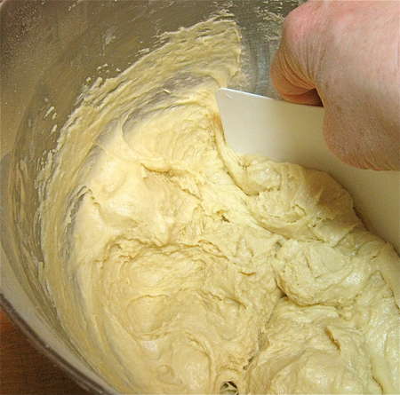 …then beat for 2 minutes with the flat beater, till the dough begins to smooth out.