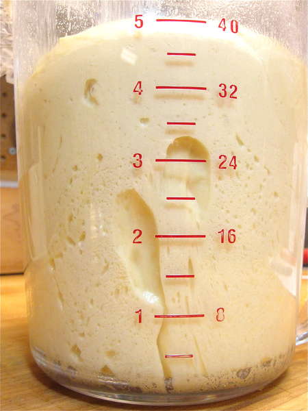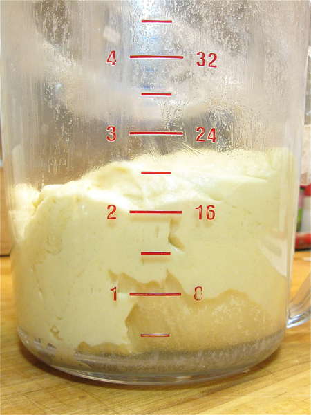 Place the dough in a lightly greased container. As usual, I’m using my trusty 8-cup measure, so I can track it as it rises.