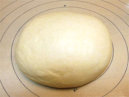 Transfer it to a lightly greased work surface or silicone mat. It’s not really necessary to shape it into a ball; I just love the feel of this soft dough in my hands, so why not, right?