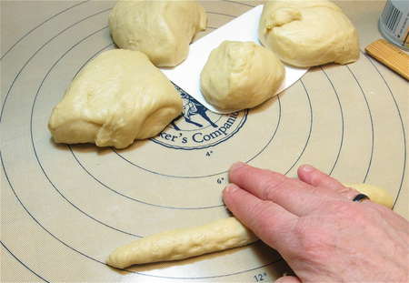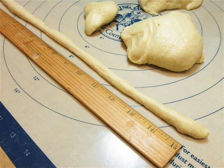 Gently roll each piece into a rope using your fingers. The dough is soft, and rolls out easily.