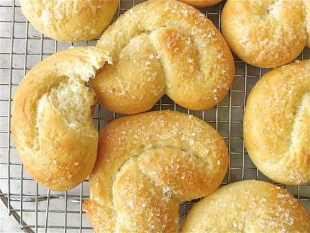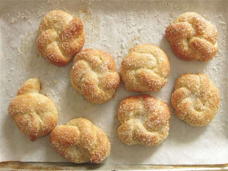 Several years ago I developed a recipe for lemon buns, lemon-scented yeast buns that, surprisingly, aren’t sweet at all. The hint of lemon simply adds its own fresh flavor to these airy textured, light-gold buns. A dollop of jam complements the tart lemon beautifully.