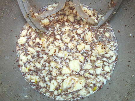 In goes the cooled fruit, including any liquid that hasn’t been absorbed.