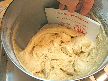 …then scraped down the sides of the bowl, and switched to the dough hook.