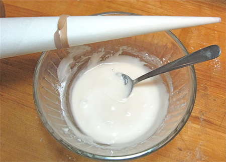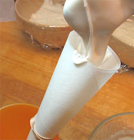 Spoon icing into parchment cone, and cut off its tip, if it’s too small.