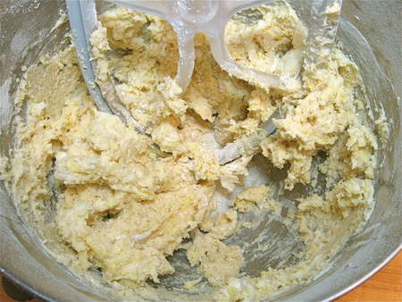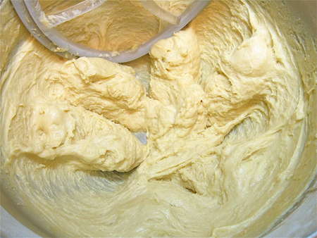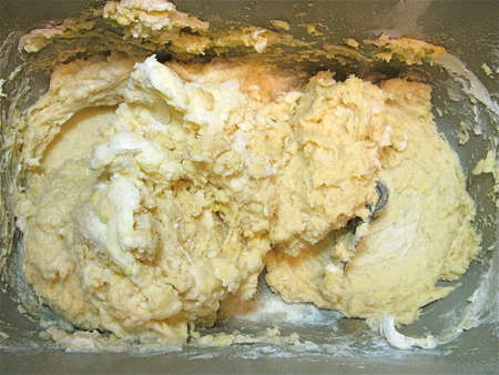 …then beat with the flat beater at medium-high speed for 5 minutes. See the dough starting to smooth out?
