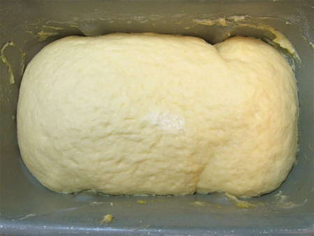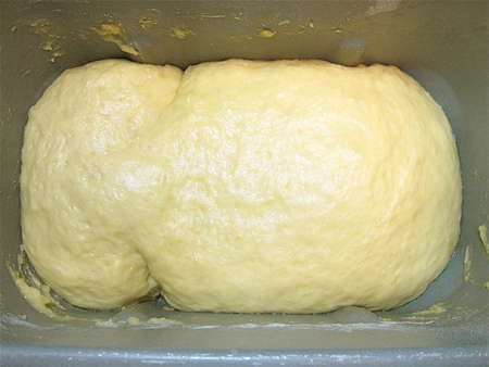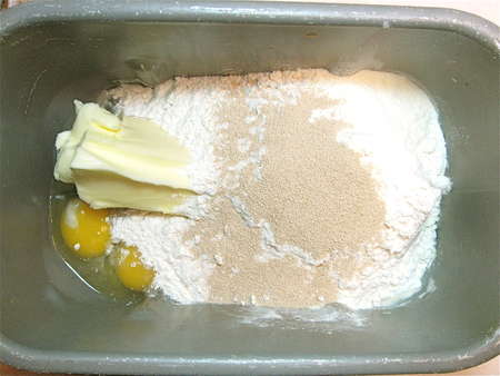 Let’s begin again. Everything into the bucket of your bread machine, set on the dough cycle.