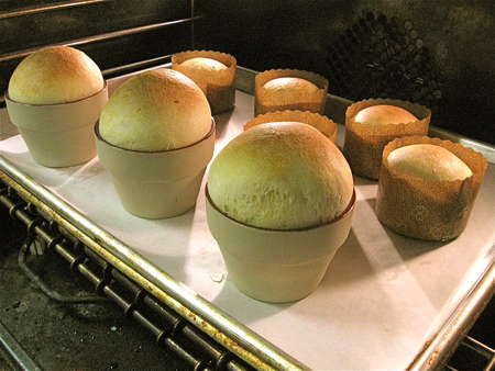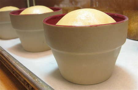 Notice how nicely the dough has crowned over the rims of the flower pots.