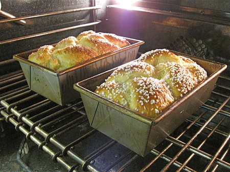 Bake the loaves on a lower rack of the oven till they’re a VERY light golden brown, anywhere from 10 to 20 minutes depending on what pans you’ve used.