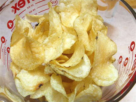 Measure out a scant 3 ounces potato chips, which is about 4 cups.