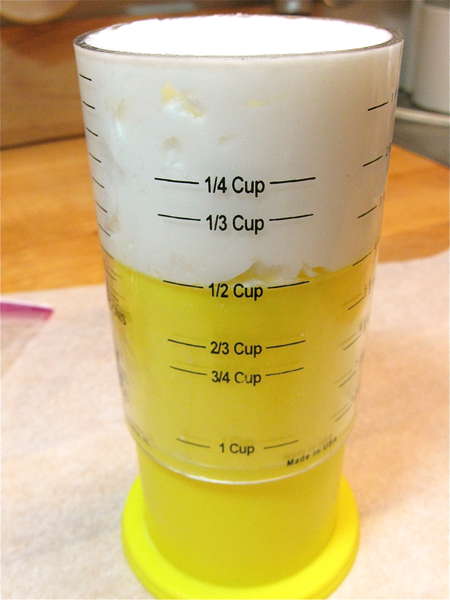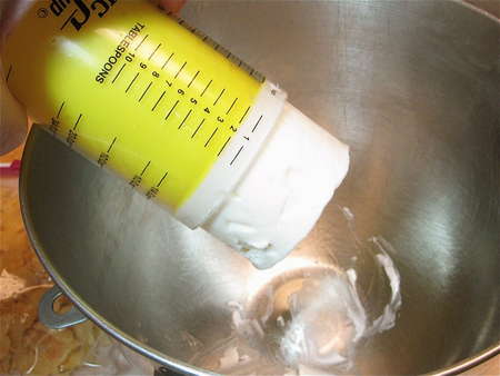 Next, the cookie dough. This recipe calls for shortening, which means I reach for my adjustable measuring cup. Slide the inner piece to the desired measurement, pack in the shortening...
