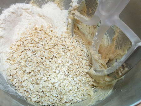 In go the oats and flour.