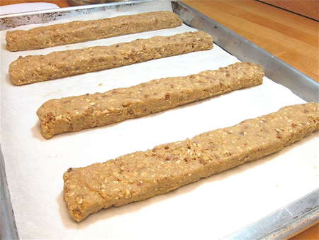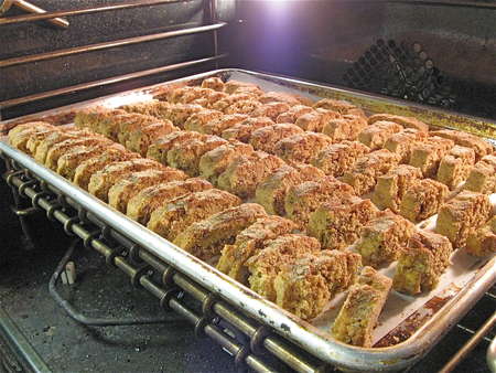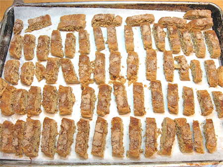Reduce the oven heat to 325°F, and bake the biscotti for another 25 minutes or so.