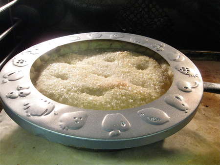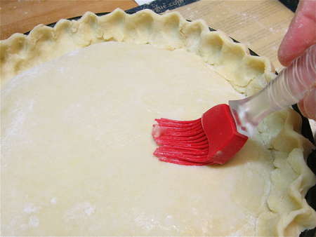 Add the top crust, crimping to seal. Brush with milk or cream...