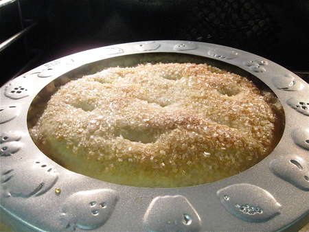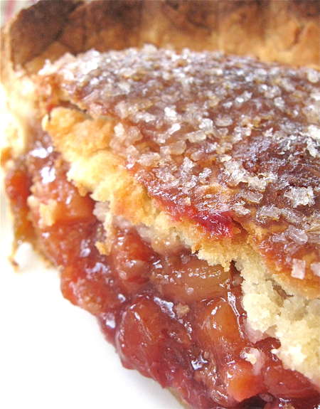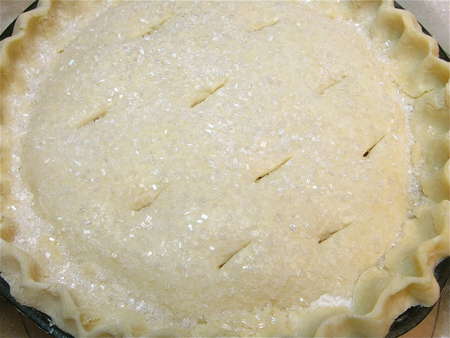 ...then sprinkle with coarse sparkling sugar. Cut slits in the top to let the steam escape (and hopefully prevent any filling eruptions).