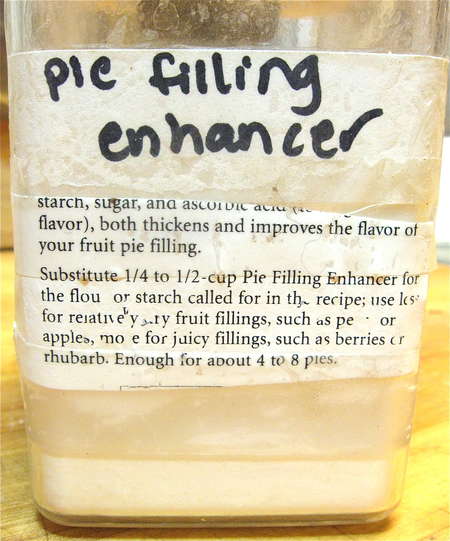 As you can see, I use our pie filling enhancer a lot. I like it because it includes a bit of ascorbic acid, both for flavor, and to help retain fruit color; and when you mix it into the fruit, it doesn't clump like cornstarch or flour, and you don't have to wait for it to dissolve, like tapioca.