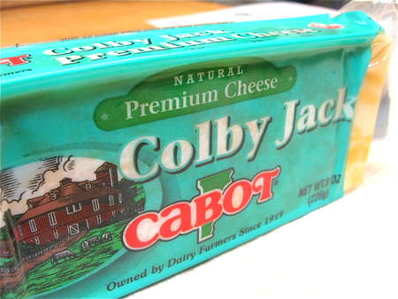 I've always loved the look of this Colby/Monterey Jack clone from Cabot. Which, if you haven't seen it, is a farmer-owned cooperative here in Vermont, producing a wide range of award-winning cheeses. Including low-fat cheeses that are, surprisingly, quite tasty.