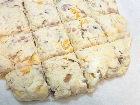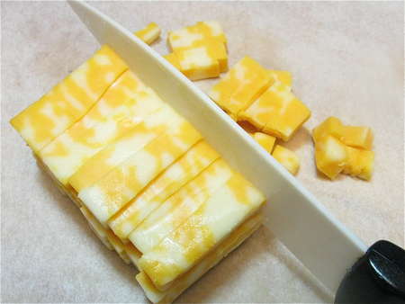 Cheese diced, sausage sliced... let's make biscuits.