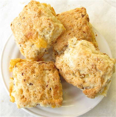 The following biscuits—a.k.a. scones—are a great example of cheese as condiment. With just 1/5 of an ounce of cheese per serving, these are well within what your diet can handle. Even the sausage (less than 1 ounce per serving) isn't a deal-breaker. And their flavor is out of this world.
