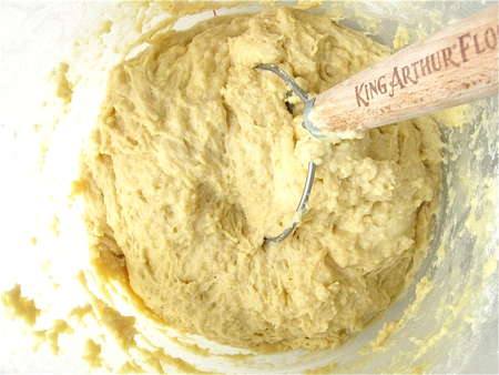 Our sturdy dough whisk, with its flow-through blades, does a first-rate job here.