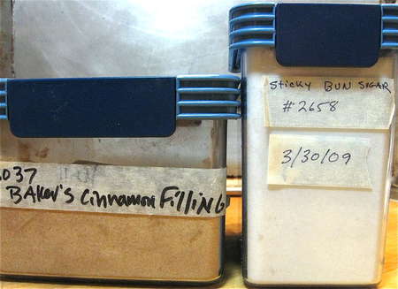 Now, for two of our favorite sticky bun ingredients: baker's cinnamon filling, and sticky bun sugar.