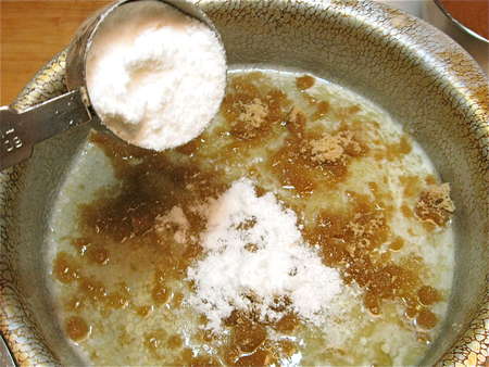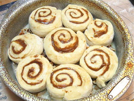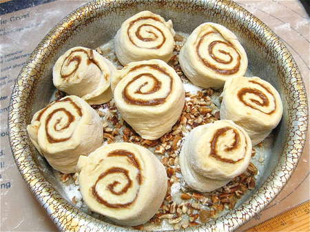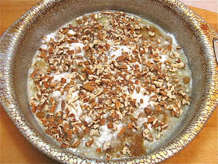 Add pecans or walnuts, halves or chopped. Set the pan aside while you make the buns.