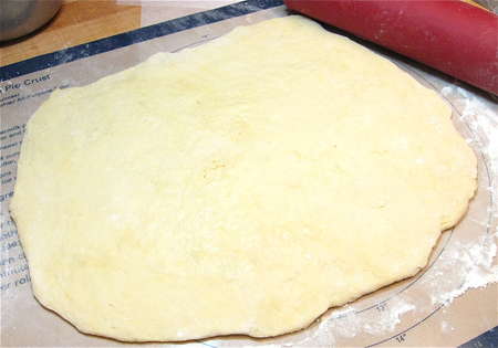 Quickly roll the dough into a rough 15" x 10" rectangle. You want to work quickly, because the colder the dough, the easier it is to work with.