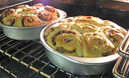 Turn the buns out of the pan onto a rack. Ahhh.... Scrape any leftover topping out of the pan onto the buns.
