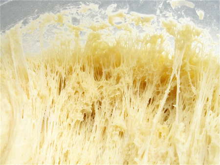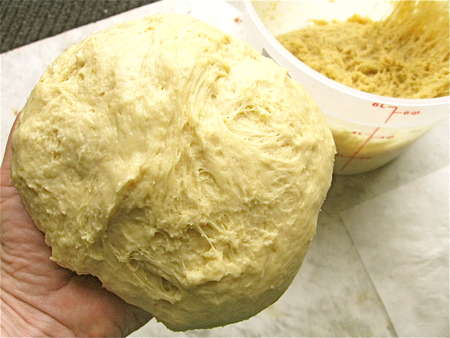 Look how the gluten has developed—all on its own. Fermentation over time develops gluten just like kneading does. So no-knead breads substitute time for kneading. I'll take that trade any day!