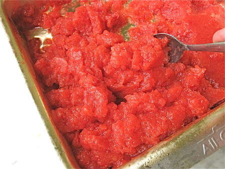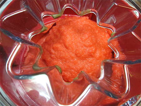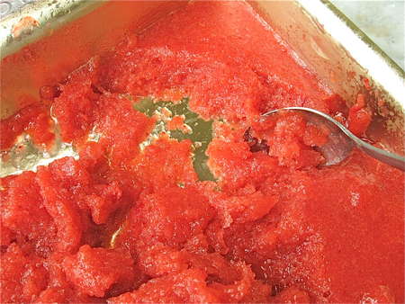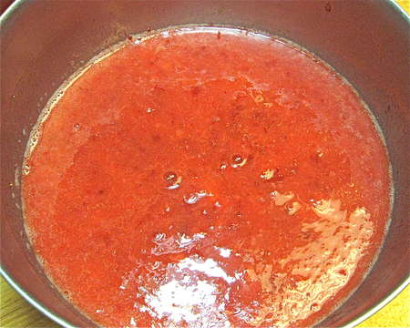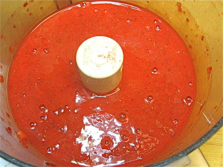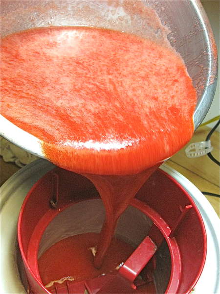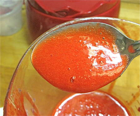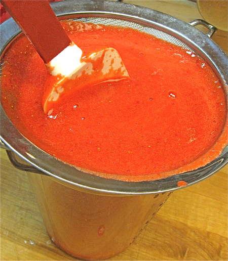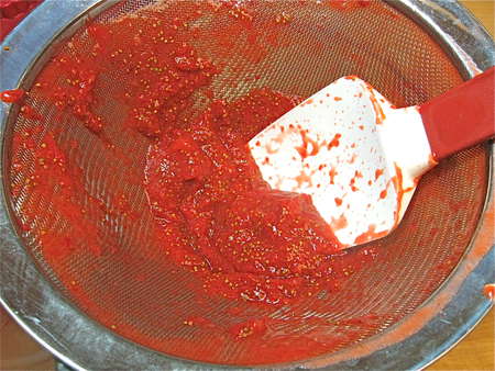 Ah, at last: seedless purée. Combine this purée with the sugar syrup and corn syrup, and chill for at least 1 hour.