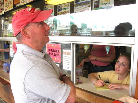 Here's my husband, Rick, surveying his options. Oddly enough, after much careful thought, he invariably orders plain strawberry.