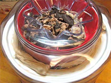 ...and let it spin some more. Notice the ice cream oozing out the top; that's OK.