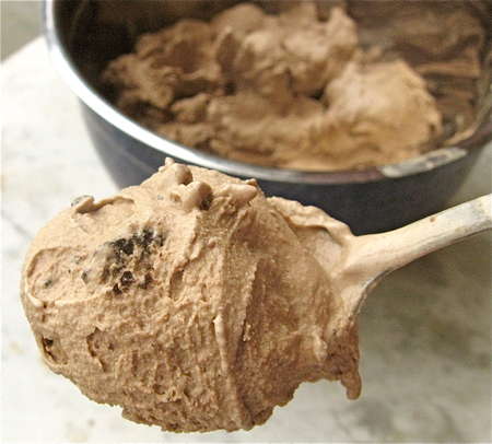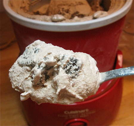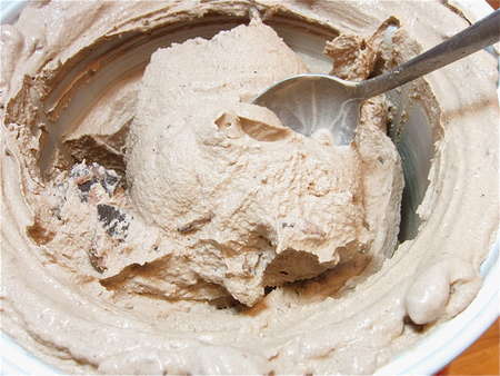 In our freezer here (O°F), it took 4 hours for it to reach this consistency. Stir in any extras when it's at this point. Serve, or let freeze for an hour or so longer, for firmer ice cream.