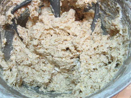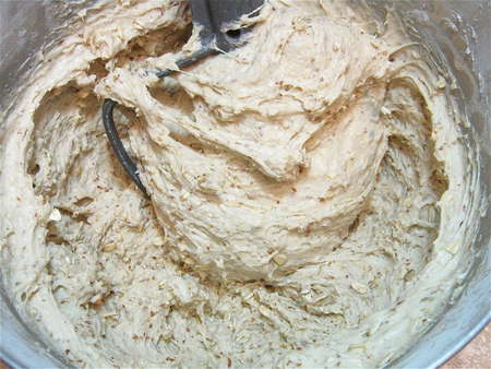 Beat till thoroughly combined. The dough may be VERY sticky, as it is here.