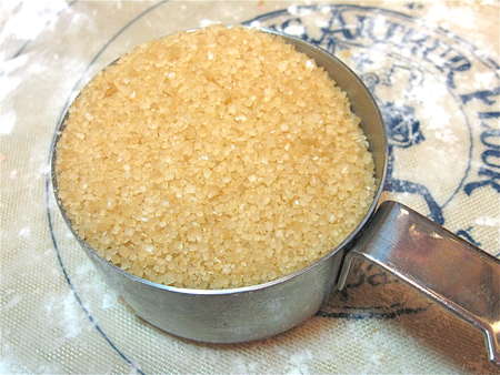 Gail is a veteran bread baker, and so likes to use an array of artisan ingredients. For instance, Demerara sugar (above), a coarsely granulated “raw” sugar – granulated sugar in its less refined state. Tasting very mildly of brown sugar or molasses, it's a good-looking decorating sugar, as well as a tasty sweetener.