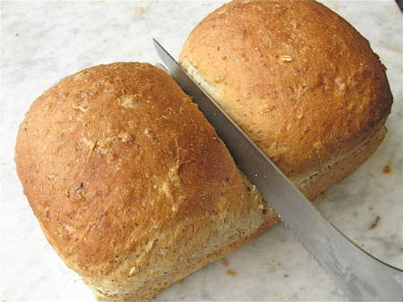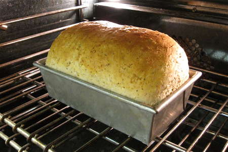 Remove the bread from the oven, and place it on a rack to cool. After about 5 minutes, turn the loaves out of the pans to cool completely on the rack.