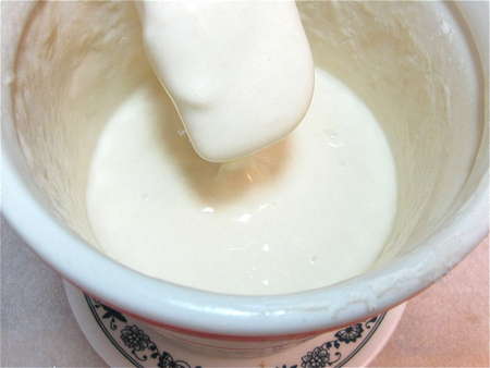 Now comes the part where your recipe says “Discard 1 cup of your starter, and add 1/2 cup of water and 1 cup of flour to the remainder.”