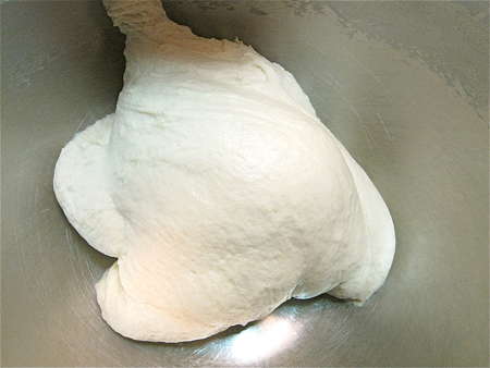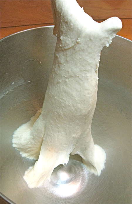 Then knead to make a soft, elastic dough. I kneaded this for about 7 minutes in a stand mixer. Feel free to use your bread machine, set on the dough cycle.