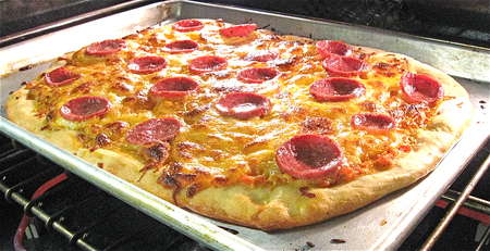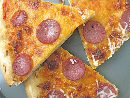 Here's a thick-crust pizza. I'm in the thick-crust camp – none of that New York City, coal-oven burned cracker crust for me, thanks.