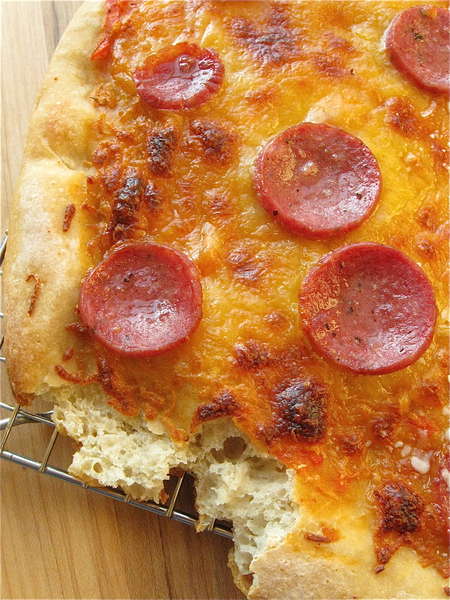 ...and extra-thick. It's all in what size pan you use, how much yeast, and how long you let the dough rise. Yeast dough is nothing if not accommodating – to both your schedule, and your culinary whims.