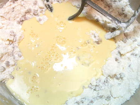 Pour the liquid mixture into the dry ingredients.