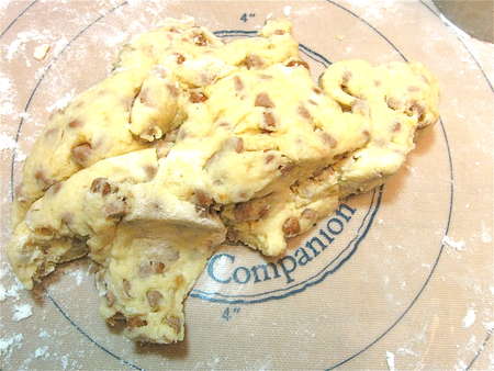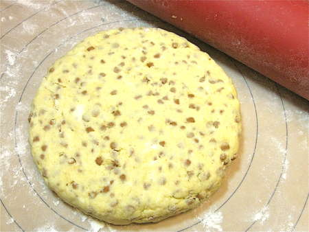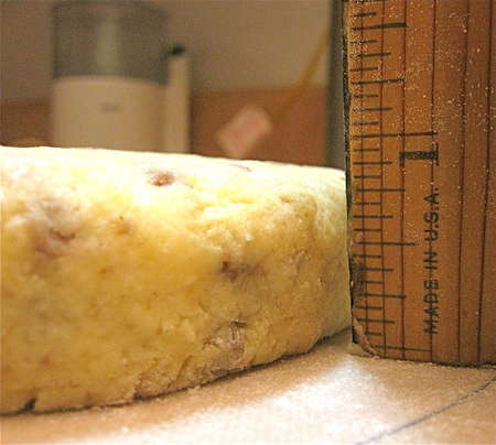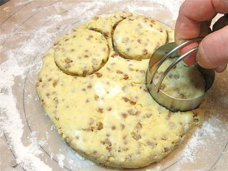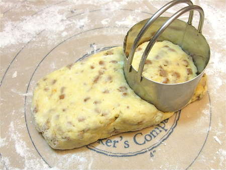 ...shape them into a 3/4”-thick rectangle about the width of your cutter, and cut 2 more scones.