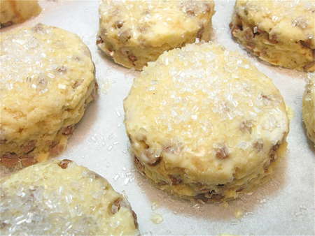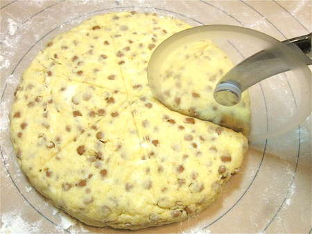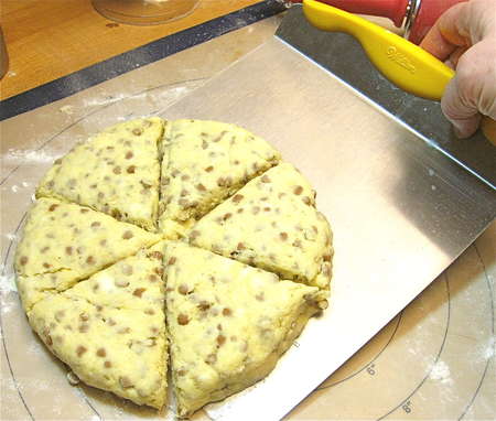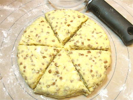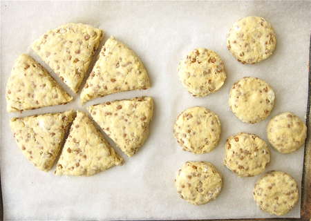 Back to our wedge-shaped scones. Notice the bit of space between them? Placing them close together, but not touching, means their sides will bake up soft and tender.