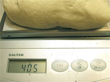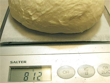The entire piece of dough weighs 812g; don't fret if yours doesn't weigh exactly 812g, OK? This isn't rocket science.