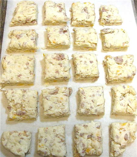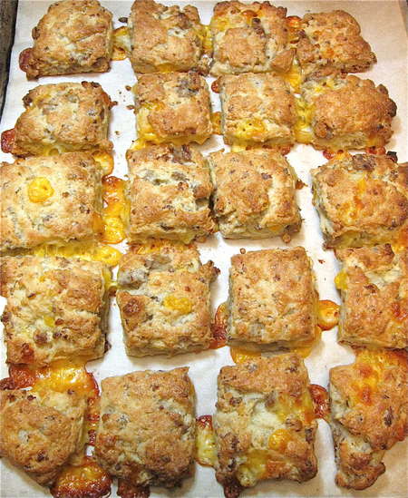 ...how about taking a break from sweets, and enjoying something savory? Our Sausage Cheese Biscuits are easily made ahead...