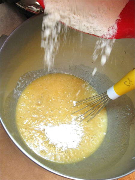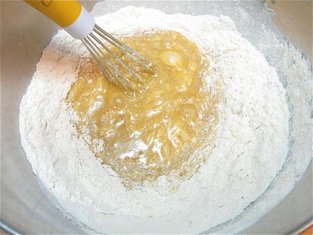 Add the dry ingredients to the liquid ingredients.