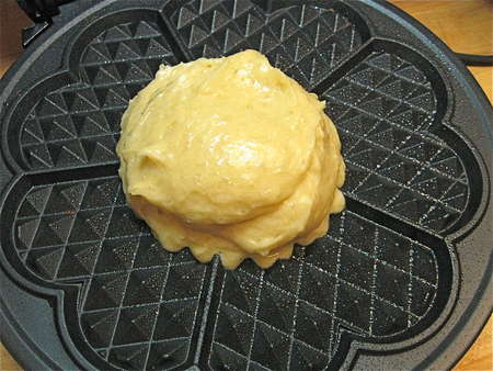 Pour a scant half-cup of batter onto your preheated, lightly greased waffle iron.