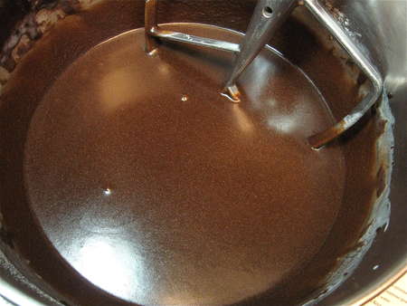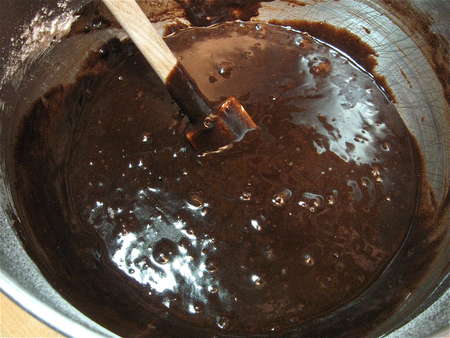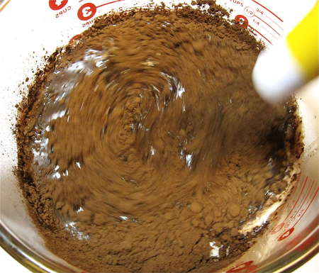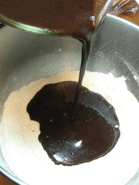 Pour the cocoa mixture over the dry ingredients.
