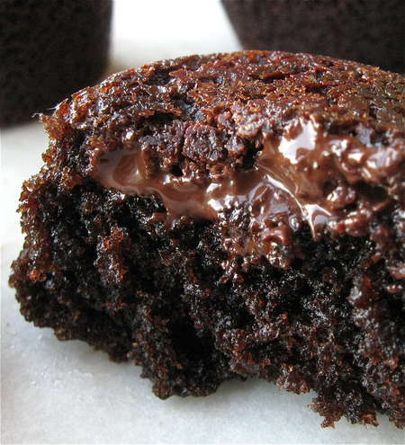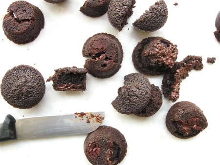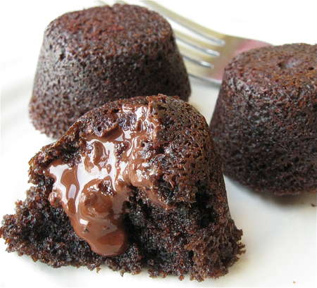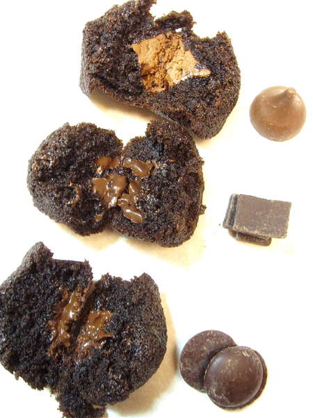 So I was thinking, how about just forgetting the unbaked batter thing, and simply adding solid chocolate to the center of an unbaked mini cake?