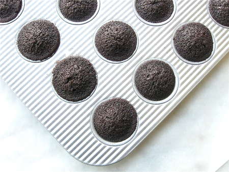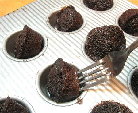 Yes, MINI cake. Isn't it fun eating a little two-bite cake, instead of a monster double-layer slab? And then you can justify eating another, because they're just so tiny and cute.